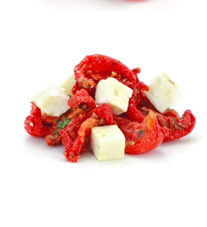 The original traditional oven semi dried tomatoes. This popular mix of semi dried tomatoes mixed with Australian cubed cow’s milk fetta cheese then marinated with garlic, herbs and spices